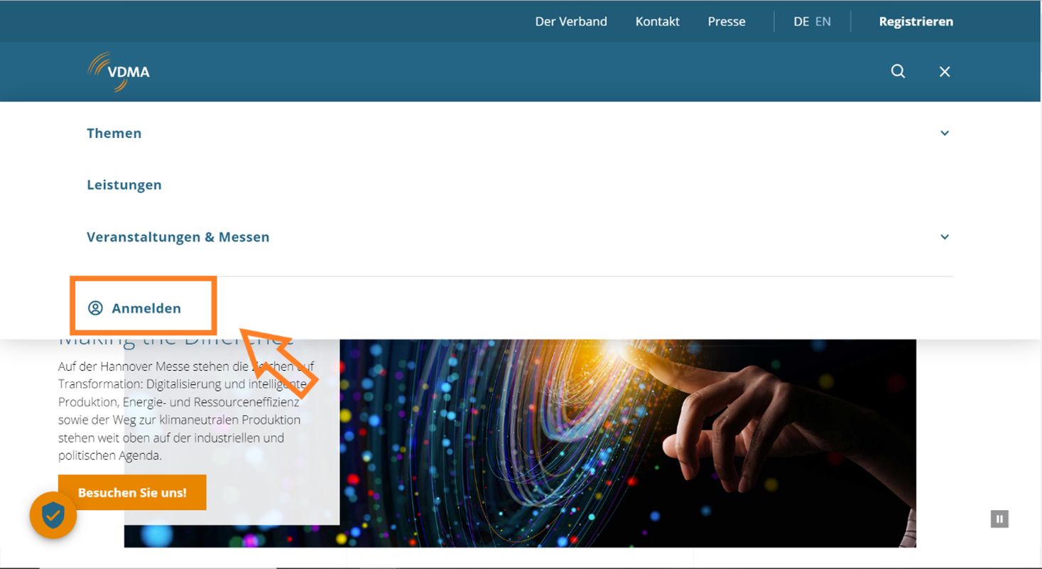 Falls Ihr Unternehmen bereits Mitglied im VDMA ist, können Sie sich ganz einfach registrieren.