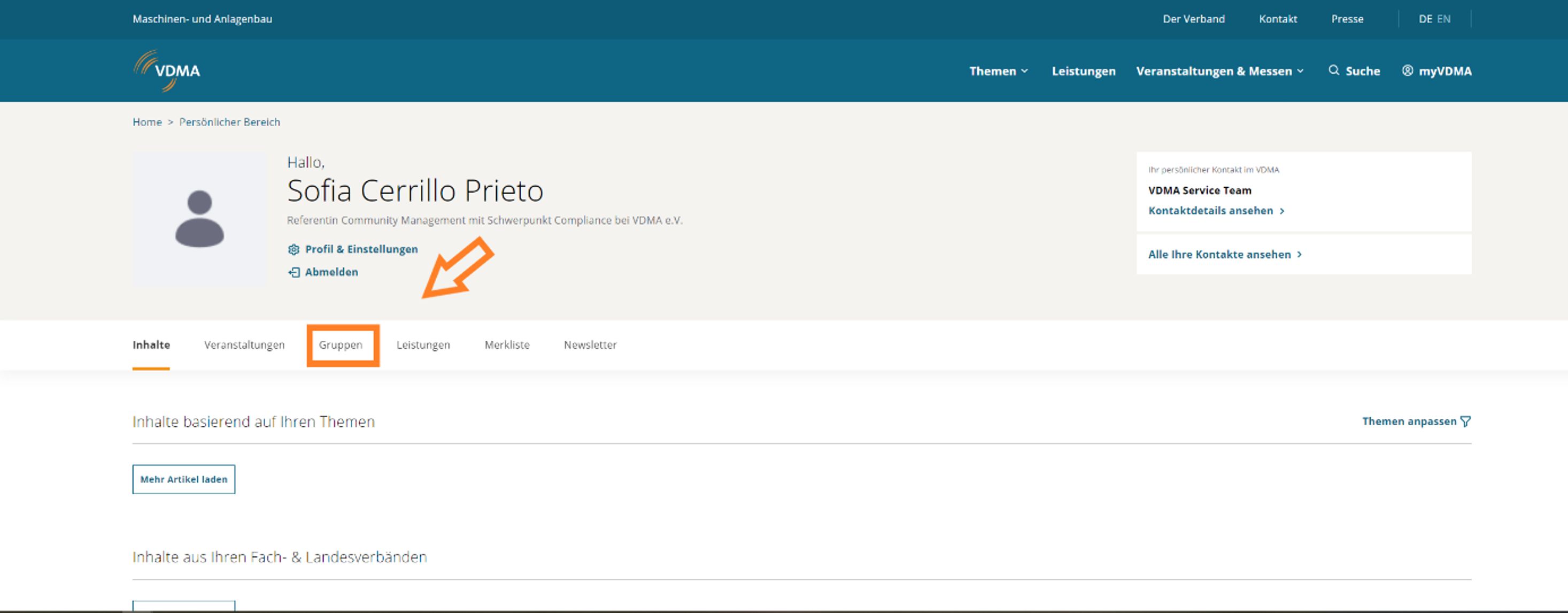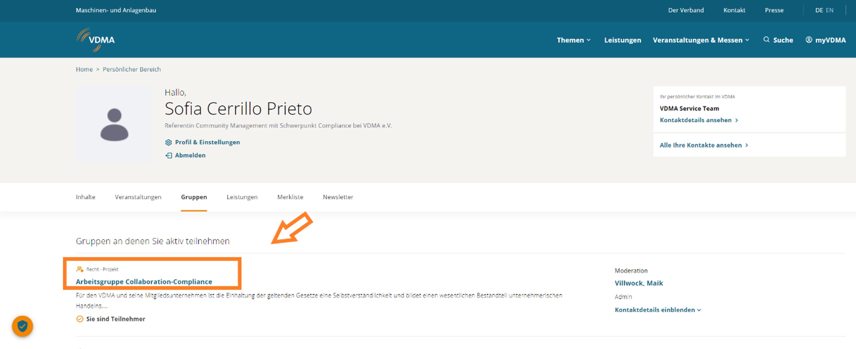 a. Auf der Webseite finden Sie Ihre Collaboration-Gruppe über Ihren persönlichen Bereich: