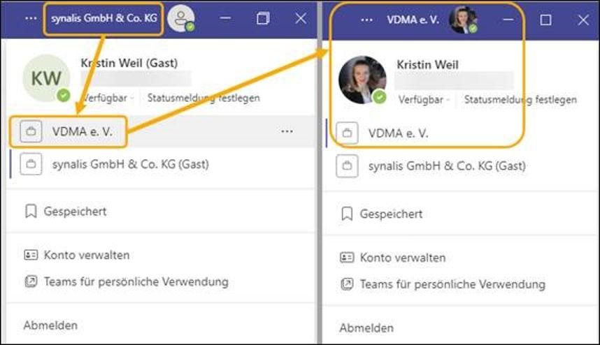 b. In MS Teams finden Sie Ihre Collaboration-Gruppe im VDMA-Tenant (d.h., in der VDMA-Umgebung) Ihrer Teams-App. Sie müssen ggf. vom Teams-Tenant Ihres Unternehmens auf den VDMA e.V. Tenant wechseln. Ein Video, das Ihnen zeigt, wie Sie den Tenant wechseln, finden Sie auf dieser Infoseite.