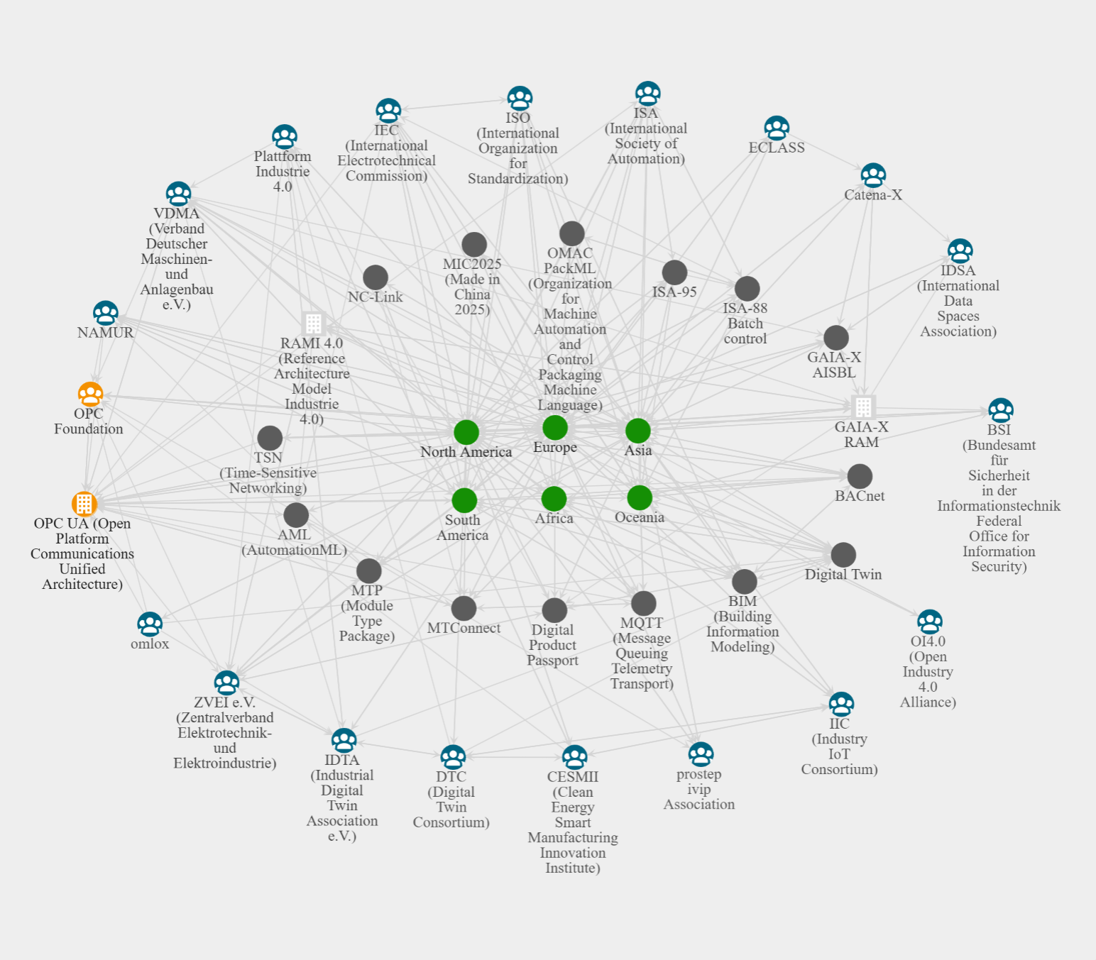 In the course of the project, this catalog of relevant interoperability efforts (e.g., technologies, concepts, organizations) related to Industrie 4.0 as well as their network of relationships is being developed.